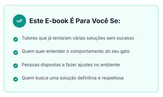 Lembre-se: Cada dia que passa sem resolver isso é mais um dia de estresse para você e para seu gato. Mais um dia limpando. Mais um dia se sentindo frustrado. Mais um dia sem a paz que você merece ter em casa.